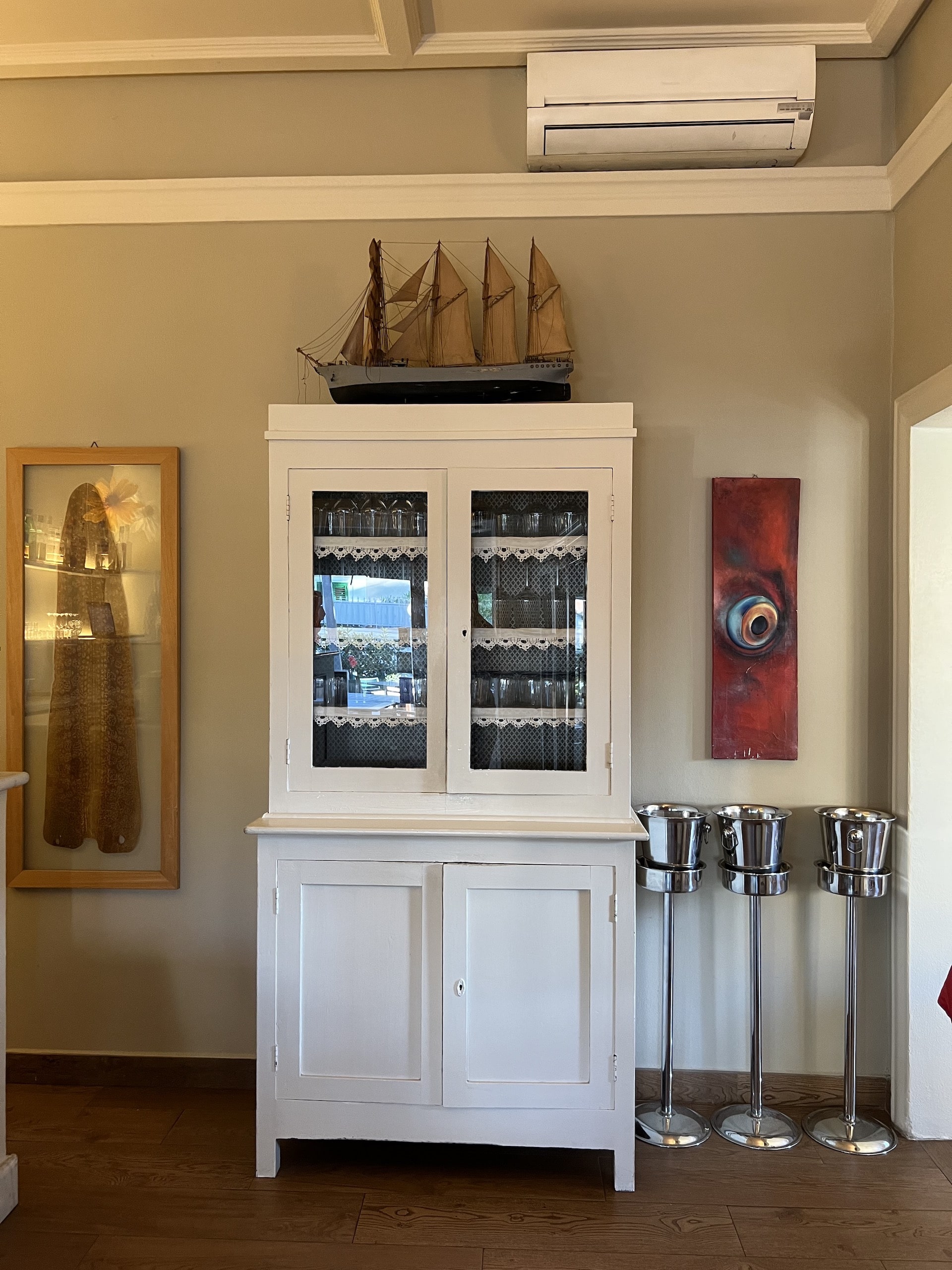 Il Ristorante Scolapasta è molto accogliente e singolarmente arredato con quadri dell'artista locale Agata Monti.